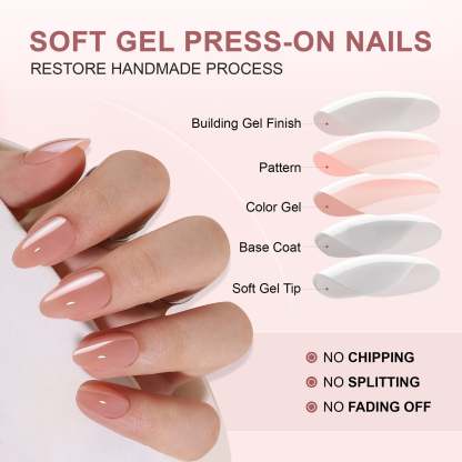 Our soft gel nails offer a gentle. flexible fit with zero pressure on your nail beds. giving you a comfortable. natural feel. They sit flush with your cuticle line for a flawless. vibrant look. no matter the style.